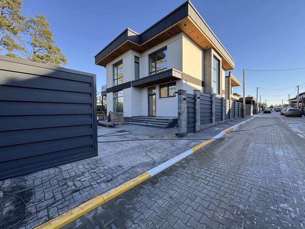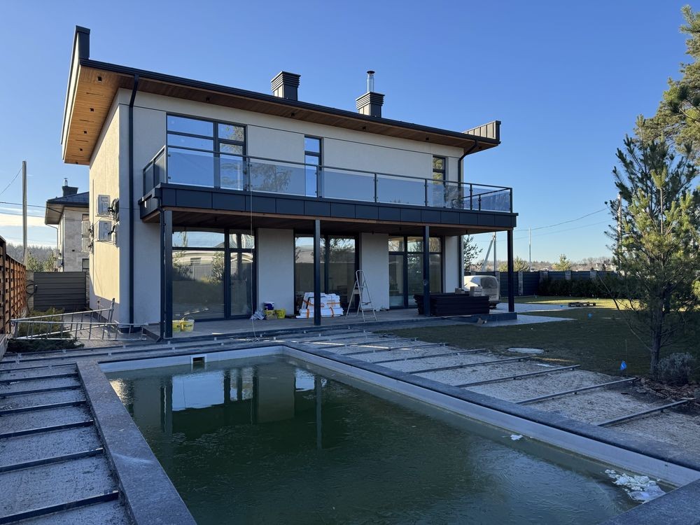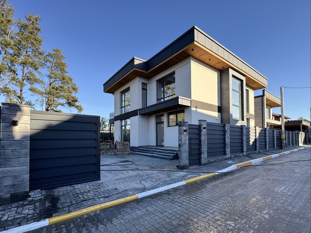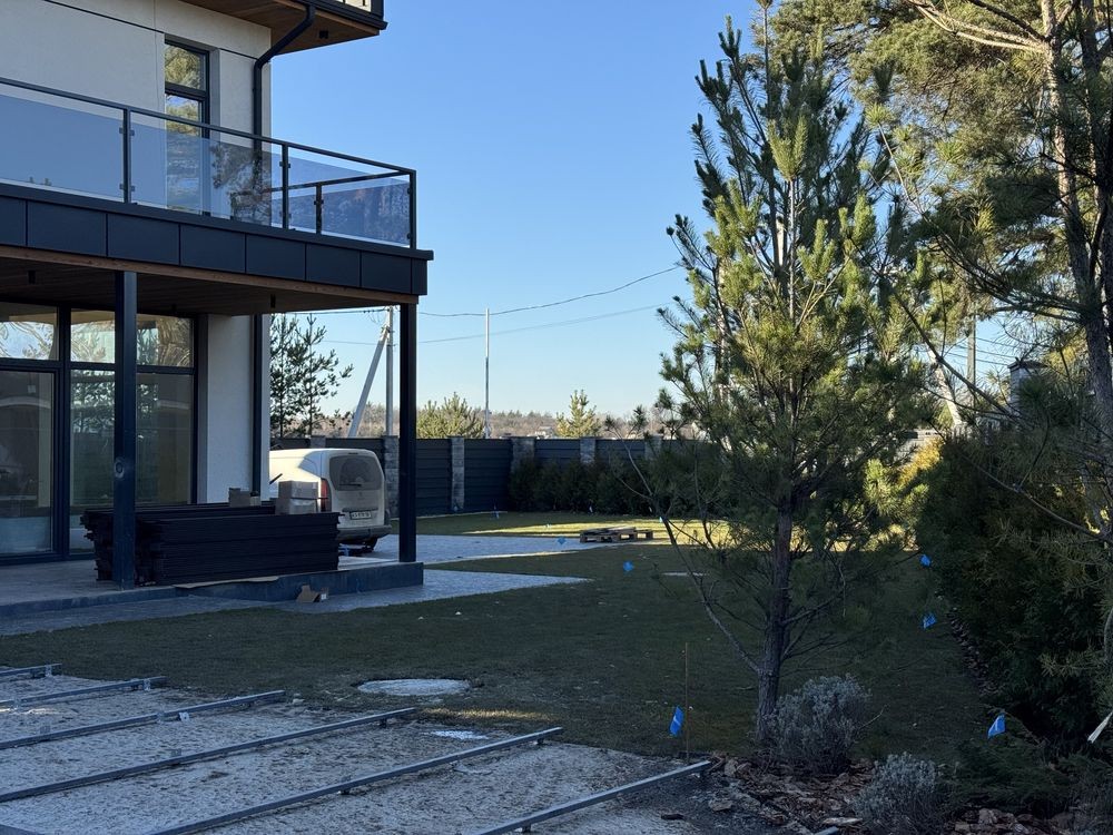 Броварской р.н.с.Рожны.Дом 2020г.Площадь жилая 210м2.Общая 300.Стены керамоблок.залиты межэтажные монолитные участок 36сот.Электричество15кВт.Интернет.Рядом лес.Маркет.базар.автобусная остановка.До города 20км
