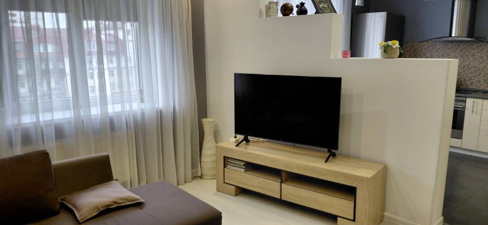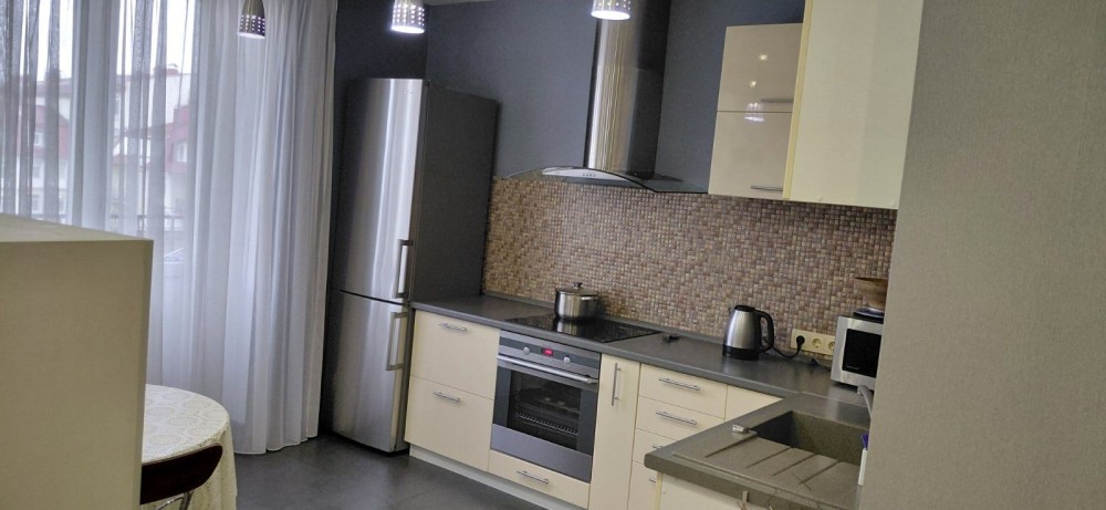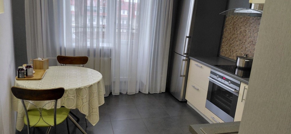 Оренда стильної 1 к кв з кухнею студією в новому будинку ЖК "Файна Таун" в Шевченківському районі, вул. Салютна, 2 Квартира 43 м2 , розташована на четвертому поверсі та складається з передпокою, спальні, великої кухні -студії та санвузла. Вікна квартири виходять в двір. Облаштована всіма необхідними меблями з екологічно чистої деревини та оснащена побутовою технікою: телевізор Samsung Smart 43, кондиціонери в кухні та кімнаті, плита індукційна, вбудований холодильник, духова шафа з функцією мікрохвильової печі, пральна машина з сушаркою. В кухні та ванній кімнаті тепла підлога, високошвидкісний інтернет. ЖК "Файна Таун" це: закрита територія з входом по картці, цілодобова охорона, відеоспостереження, паркінг, підземні контейнери для сміття, зарядні станції для електромобілів та лавки з інтегрованими батареями для підзарядки девайсів, розумне освітлення, яке підлаштовується під час доби та ще багато чого для того, щоб жити з комфортом й ні в чому себе не обмежувати) розповім при перегляді. Зручне транспортне сполучення та розвинута інфраструктура: магазини,спортивні та пішохідні зони ,зона барбекю, ресторани та кафе. Квартира, в якій поєднані комфорт та затишок, шукає своїх порядних орендарів молоду пару або одну людину без дітей та тварин. Перша оренда, квартира вільна.