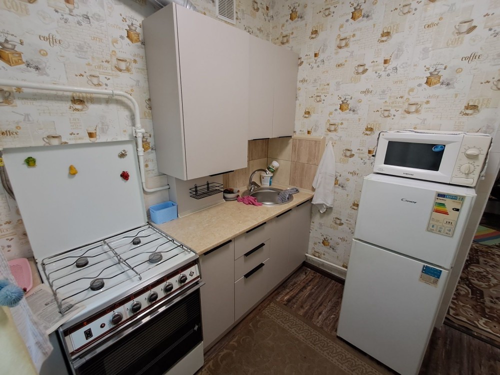 В комнате есть: космет. ремонт, необходимая мебель, холодильник. Кухня на 4 семьи, есть бойлер и душ кабина на 2 комнаты.