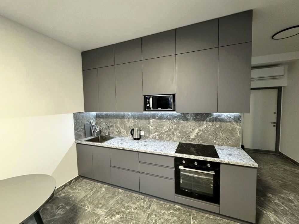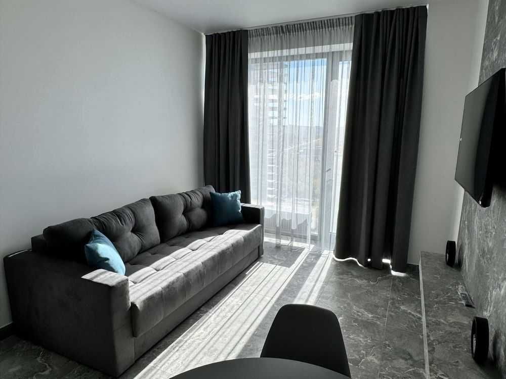 Оренда стильної 1 к кв з кухнею студією в новому будинку ЖК "Файна Таун" в Шевченківському районі, вул. Салютна, 2 Квартира 43 м2 , розташована на четвертому поверсі та складається з передпокою, спальні, великої кухні -студії та санвузла. Вікна квартири виходять в двір. Облаштована всіма необхідними меблями з екологічно чистої деревини та оснащена побутовою технікою: телевізор Samsung Smart 43, кондиціонери в кухні та кімнаті, плита індукційна, вбудований холодильник, духова шафа з функцією мікрохвильової печі, пральна машина з сушаркою. В кухні та ванній кімнаті тепла підлога, високошвидкісний інтернет. ЖК "Файна Таун" це: закрита територія з входом по картці, цілодобова охорона, відеоспостереження, паркінг, підземні контейнери для сміття, зарядні станції для електромобілів та лавки з інтегрованими батареями для підзарядки девайсів, розумне освітлення, яке підлаштовується під час доби та ще багато чого для того, щоб жити з комфортом й ні в чому себе не обмежувати) розповім при перегляді. Зручне транспортне сполучення та розвинута інфраструктура: магазини,спортивні та пішохідні зони ,зона барбекю, ресторани та кафе. Квартира, в якій поєднані комфорт та затишок, шукає своїх порядних орендарів молоду пару або одну людину без дітей та тварин. Перша оренда, квартира вільна.