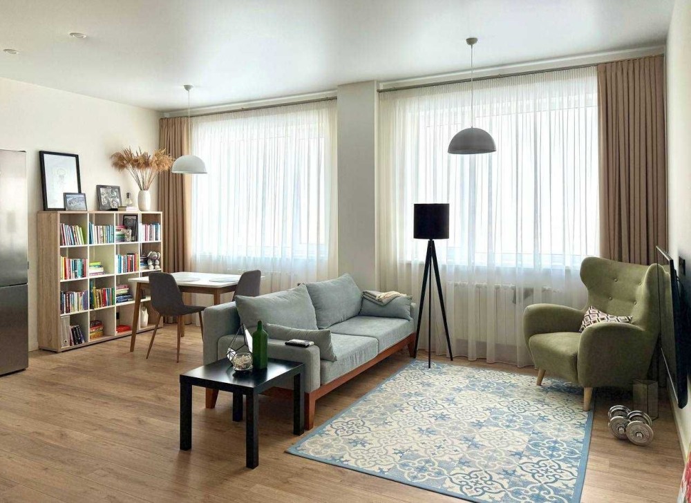 Площа — 96 м². Формат квартири: 2 окремі кімнати + велика кухня-вітальня.