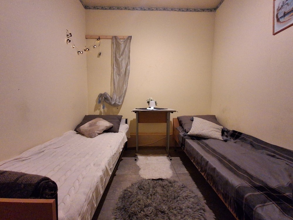 Кімната окрема, закривається на ключ з двома ліжками, тумбою та шафою для одягу!