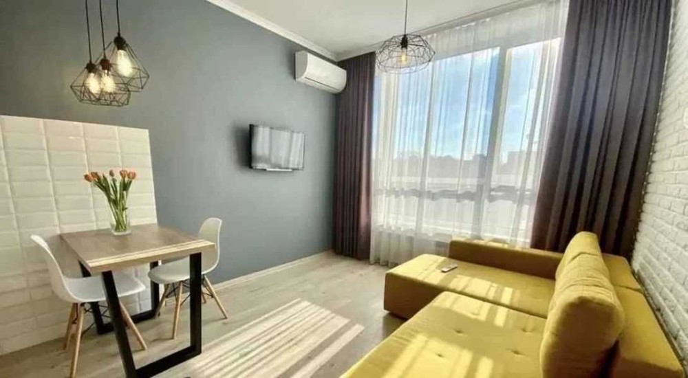 Здається квартира-студія в ЖК "Комфорт Таун" на проспекті Соборності, 17, площею 22 кв.м. Повністю укомплектована: є духовка, варильна поверхня, посудомийна машина, бойлер на 80 літрів, кондиціонер, смарт-телевізор, чайник, охоронна система Ajax та швидкісний оптоволоконний інтернет. Диван розкладається у зручне двоспальне ліжко.