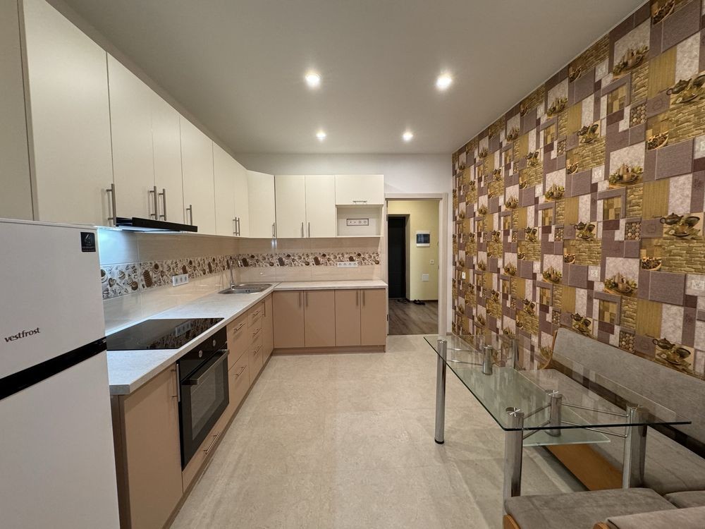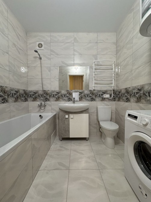 Квартира повністю мебльована та є вся необхідна побутова техніка ( бойлер, кондиціонер, пральна машина, холодильник). У квартирі є окрема гардеробна. Підлога з підігрівом у ванній.