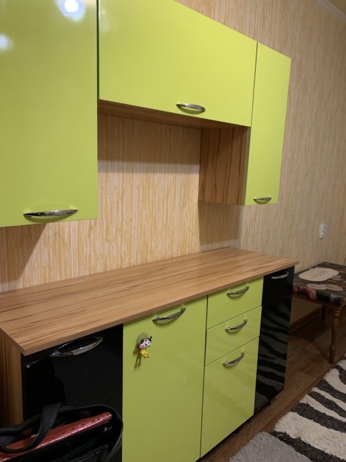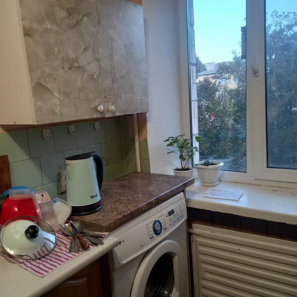 В кухні є свій кухонний гарнітур, який закріплений за кімнатою та автомат машинка.