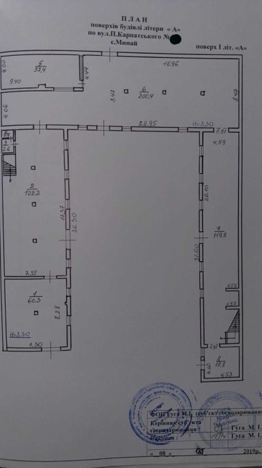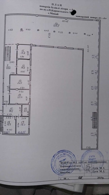 Загальна площа приміщення складає 1080 м.кв, перший поверх 559 м.кв другий мансардний поверх 521 м.кв.