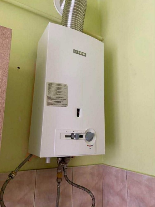 Є газова колонка, вікна дерев"яні, балкон зашклений.