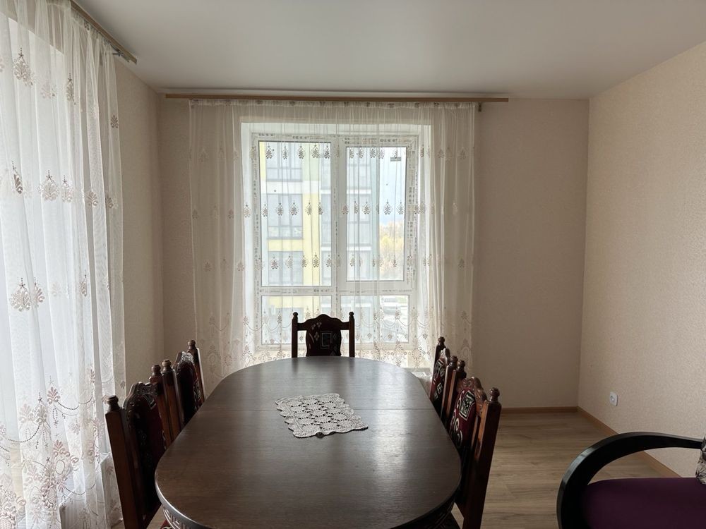 Здається простора квартира в новобудові, облаштована меблями та побутовою технікою.