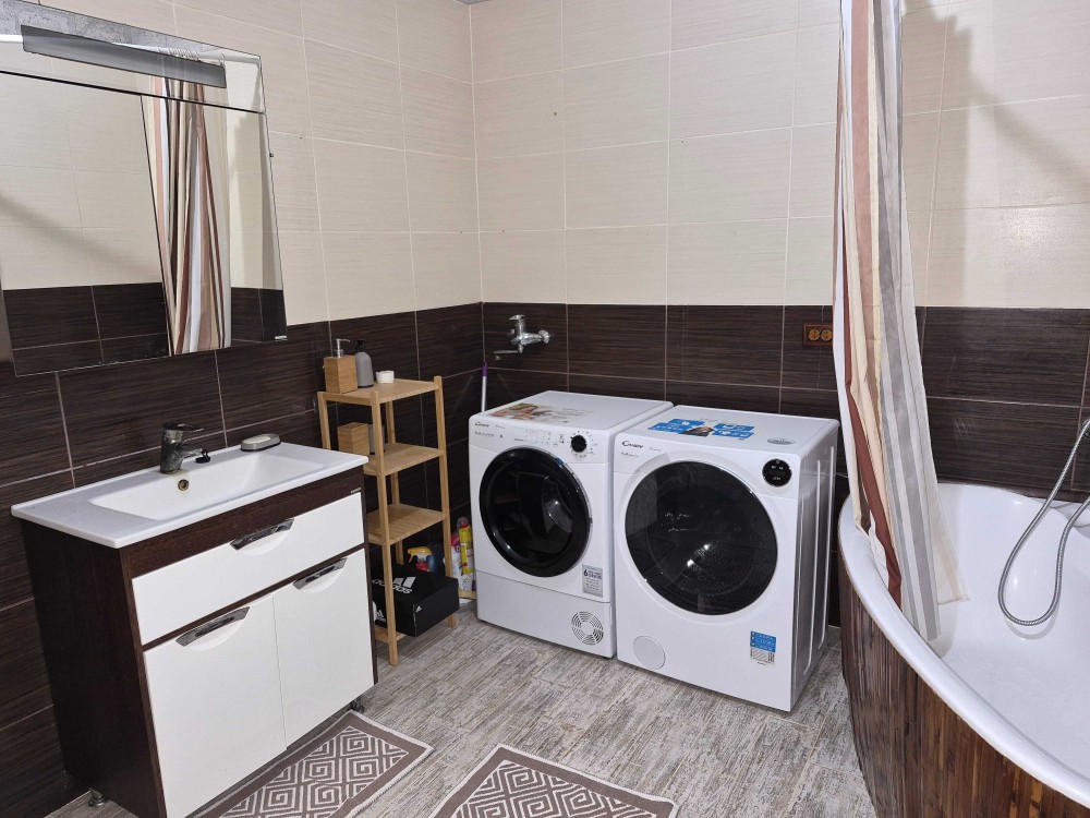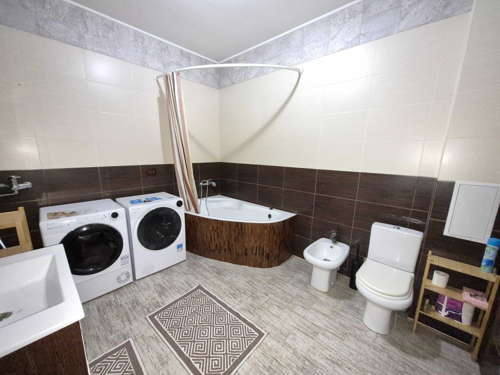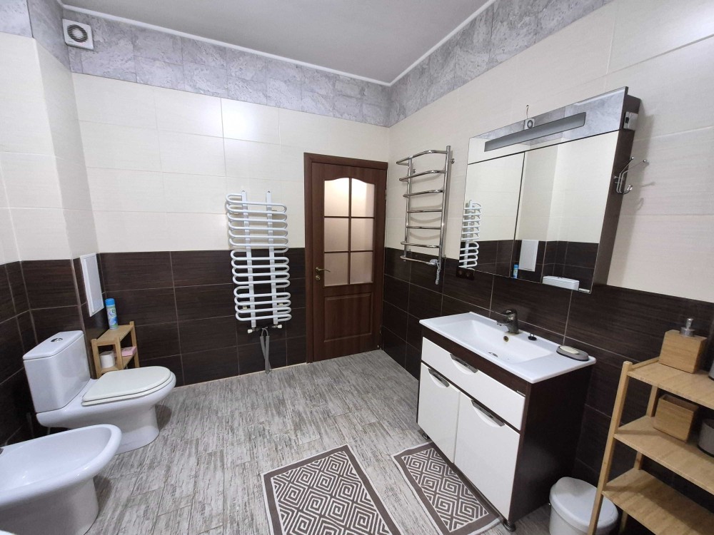Ванна кімната обладнана: санвузлом, біде, ванною, пральною та сушильною машинкою.