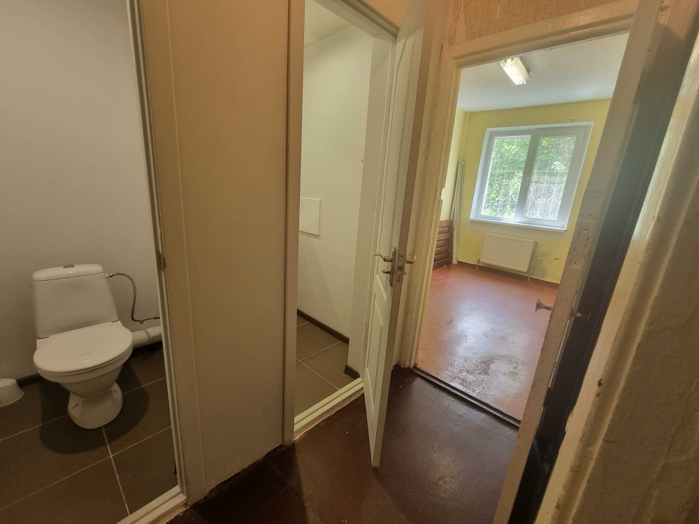 Здається в оренду невеликий теплий офіс, що знаходиться на першому поверсі по вул. Володимира Великого, 34. Складається із 3 невеликих кімнат (17,2 кв.м., 8 кв.м., 9 кв.м.), коридора та санвузла. Загальна площа офісу 39,7 кв.м. Доступ до офісу без часових обмежень. Централізоване опалення. на вікнах решітки. Є охорона сигналізація.