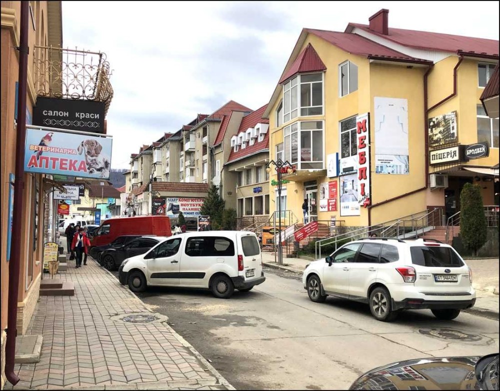 До центральної площі — 100 м, поруч відділення Приватбанку, піццерія «Бродвей».