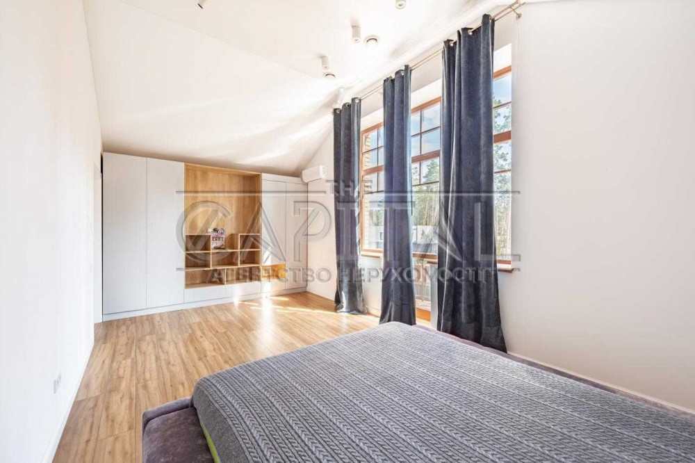 В екологічно чистій місцевості, всього за 12 км від Києва, пропонується в оренду стильний будинок у мальовничому лісі Пуща Водиця (Пуща Лісова). Закрите котеджне містечко, всього 15 будинків, цілодобова охорона та абсолютна приватність – ідеальні умови для комфортного життя.