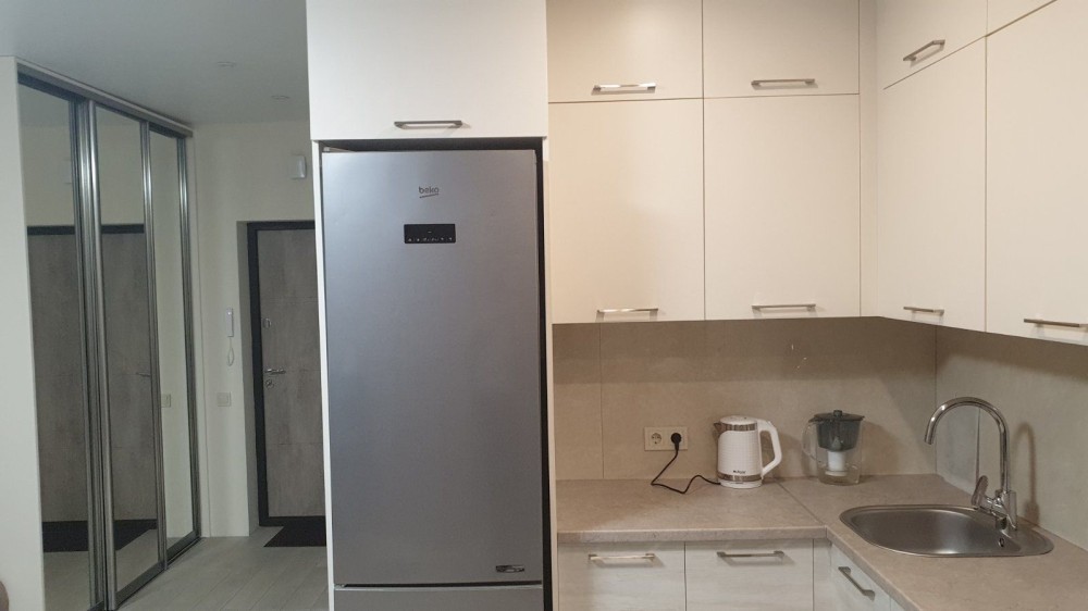 SMART квартира 31м2 з великим скляним балконом. Вікна панорамні, по вул. Метрологічна 21 Б Голосіївський район у м. Київ. Комплекс Кришталеві джерела 4а черга.Ремонт новий. Вся необхідна техніка для проживання присутня. Транспортна розв'язка відмінна: ходять автобуси біля дома. Поблизу дома Novus, Фора, маленькі магазини, нова пошта. Метро Теремки-пару зупинок, ринок, Магелан, АТБ, АВРОРА, Рошен....