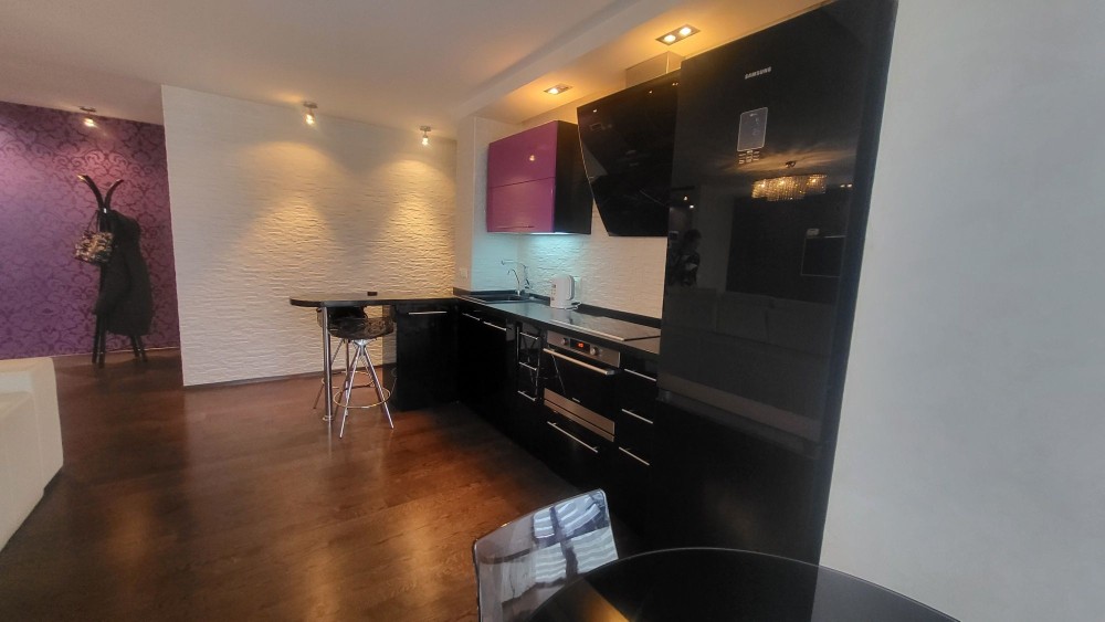 Формат кухня - вітальня, дві кімнати, гардиробна, великий санвузол.