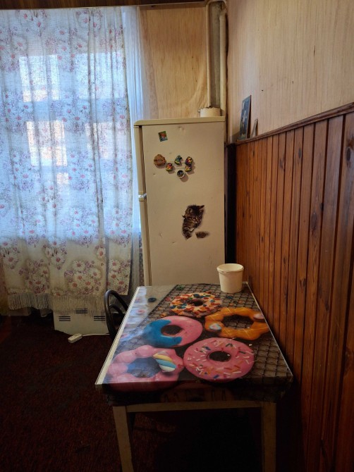 На кухні є холодильник та плита