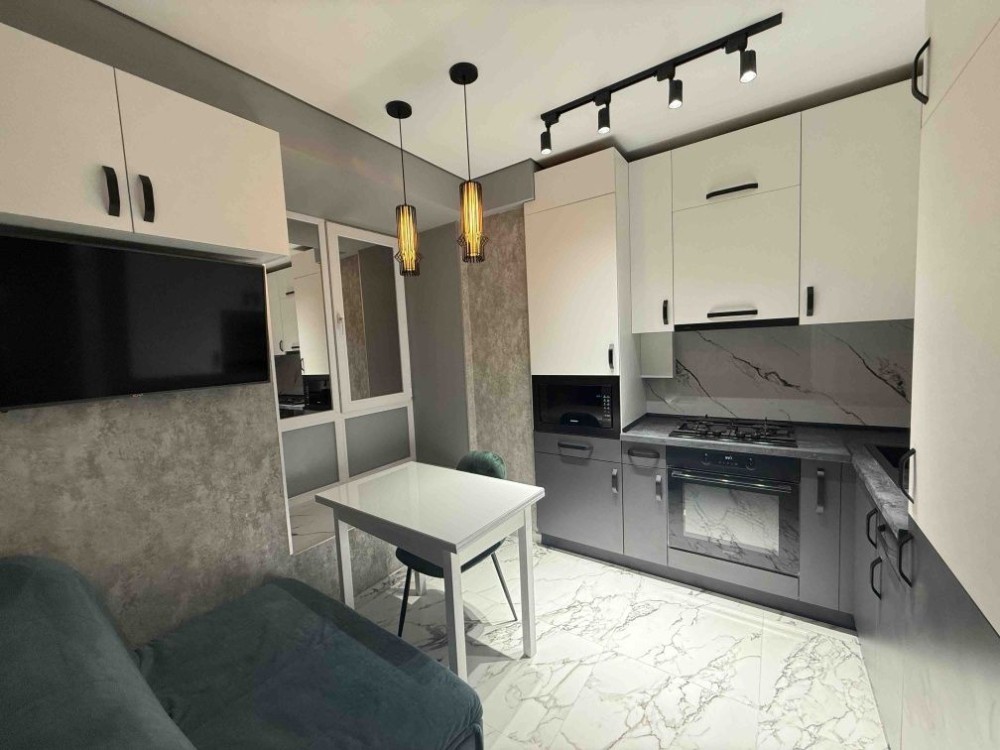 Квартира розташована на 1 поверсі, будинок 10 поверховий, загальна площа 38 м2. Зроблений капітальний ремонт: натяжні потолки, підлога з підігрівом, вбудована кухня, нові меблі.