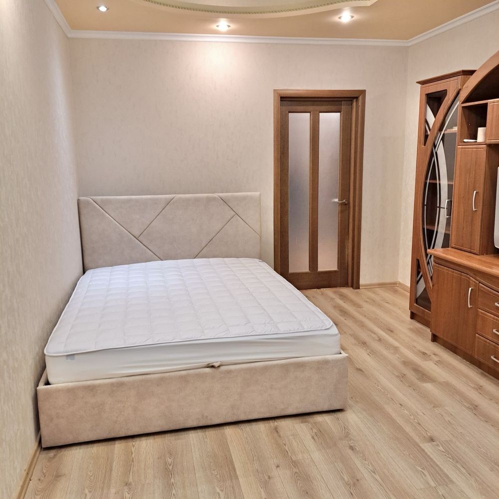 У спальні — нове двоспальне ліжко з ортопедичним матрацом.