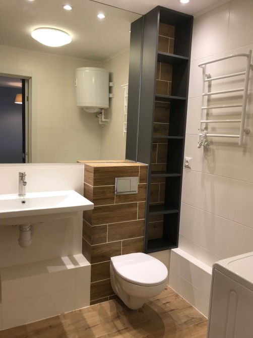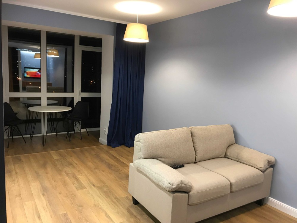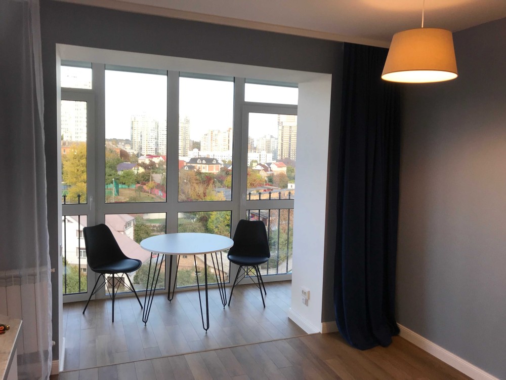 Однокімнатна квартира в домі з цегли з новим дизайнерским ремонтом. Квартира оснащена новою побутовою технікою, смарт ТV, є підігрів підлоги, кондиціонер, бойлер, вбудовані шафи, сигналізфція. Підключений інтернет є Wi-Fi. Окрема спальна кімната, з зручним ліжком та декоративним ісвітленням і полицями. Ванна кімната з душовою кабіною та великим дзеркалом.