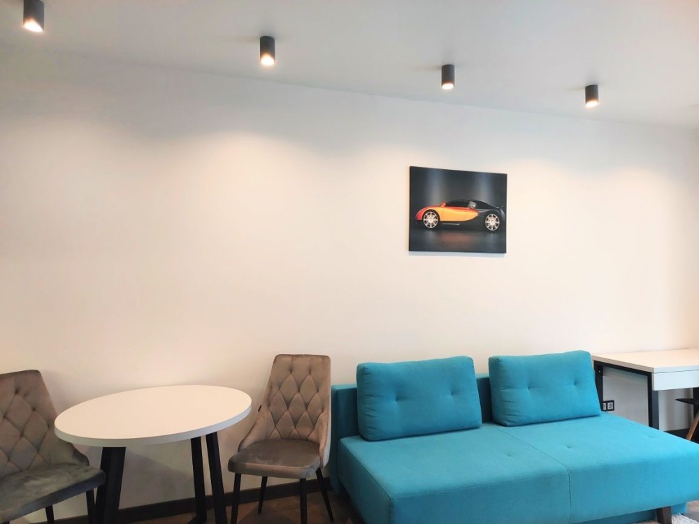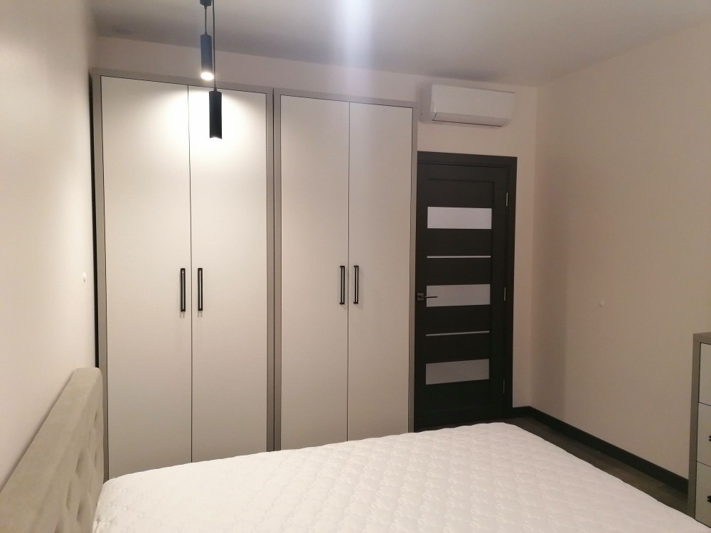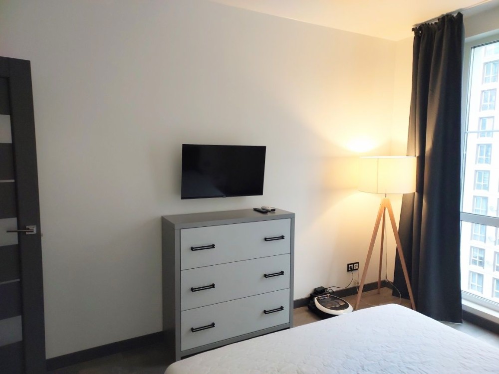 Квартира обладнана дизайнерськими меблями, які були виконані під замовлення, двоспальним ліжком з матрацом середньої жорсткості, інверторним кондиціонером, який працює до -15 °С, 2-ма телевізорами, вбудованою технікою (холодильник, духова шафа, варильна поверхня), мікрохвильова піч, електричний чайник, робот-пилосос, бойлер на 80 літрів, пральна машинка, датчики затоплення у ванній та на кухні.