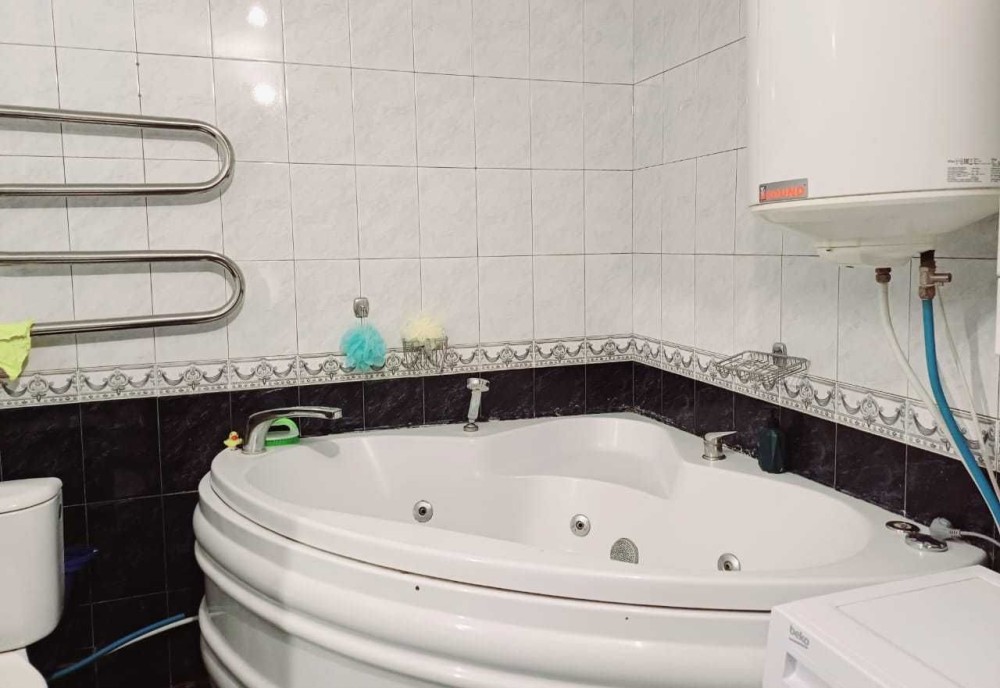 Ванна кімната облицьована якісним кахелем. Має шикарну велику ванну-джакузі.