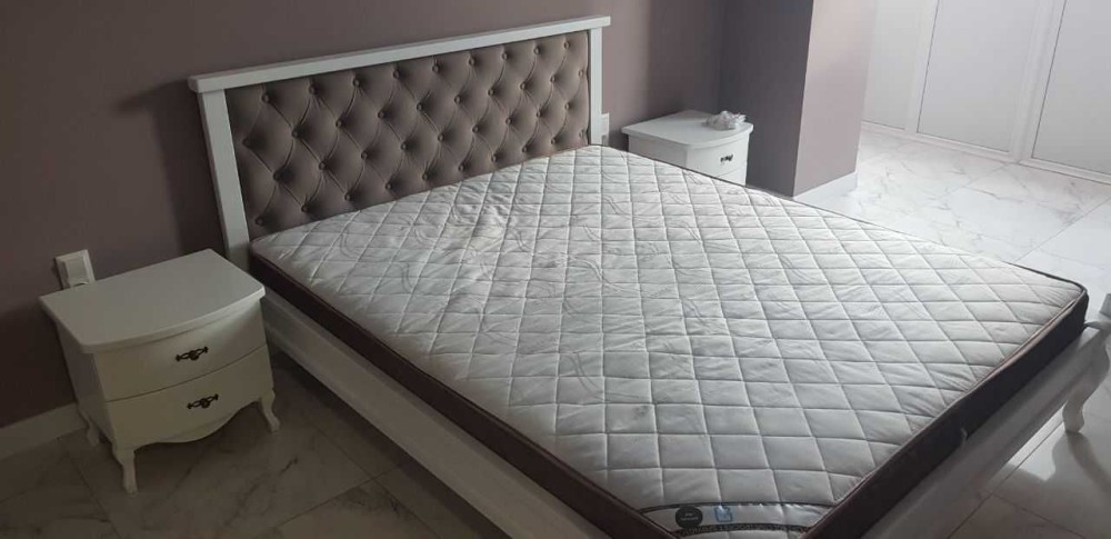 Меблі: двоспальне ліжко, шафа-купе, диван, обідній стіл, стільці