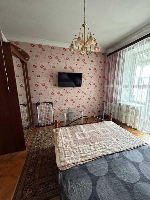До вашої уваги пропонується 3-х кімнатна квартира через дорогу від ТЦ Класс.(5 хв до метро), 2 хвилини до ринку Казка. Квартира знаходиться на 5 поверсі 5-ти поверхового будинку, товсті стіни (сталінка), високі стелі. Кімнати сонячні, просторі. У кожній кімнаті є ліжко (одне двоспальне, одне дитяче, розкладний диван). 3 шафи купе (місця для зберігання речей достатньо). Є телевізор, газова колонка, пилосос, пральна машина, електрочайник, сушарка для білизни, є посуд. Можна з котами чи маленькими тваринами. 2 Вікна виходять у двір, 2 інших вікна виходять на полтавський шлях. Оплата перший та останній місяць + ком.послуги.