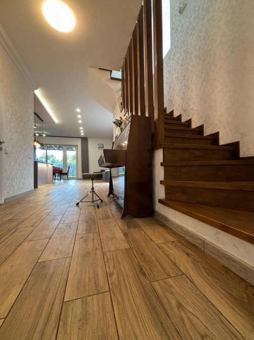 Велика вітальня (TV 80 дюймів, великий кондиціонер, диван, столи та стільці, класичне фортепіано),сучасна кухня з вбудованою побутовою технікою , 1 спальня зі своїм окремим виходом в сад та великою гардеробною, санвузол з пральною та сушильної машиною, гардероб, котельня (з бойлером на 200 л та системою теплої підлоги по всьому будинку). Сходи на другий поверх обладнані дубовими ступенями та великим вікном, що надає неймовірного затишку.