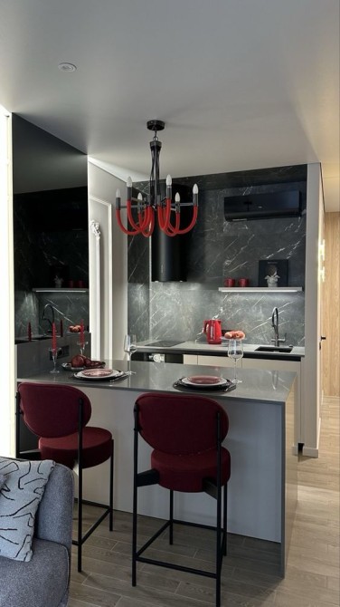 Квартира з ремонтом за дизайн-проектом (див. фото) і повністю готова до проживання. Є всі необхідні меблі, техніка, різні сценаріі освітлення, прохідні вимикачі, текстиль та декор.