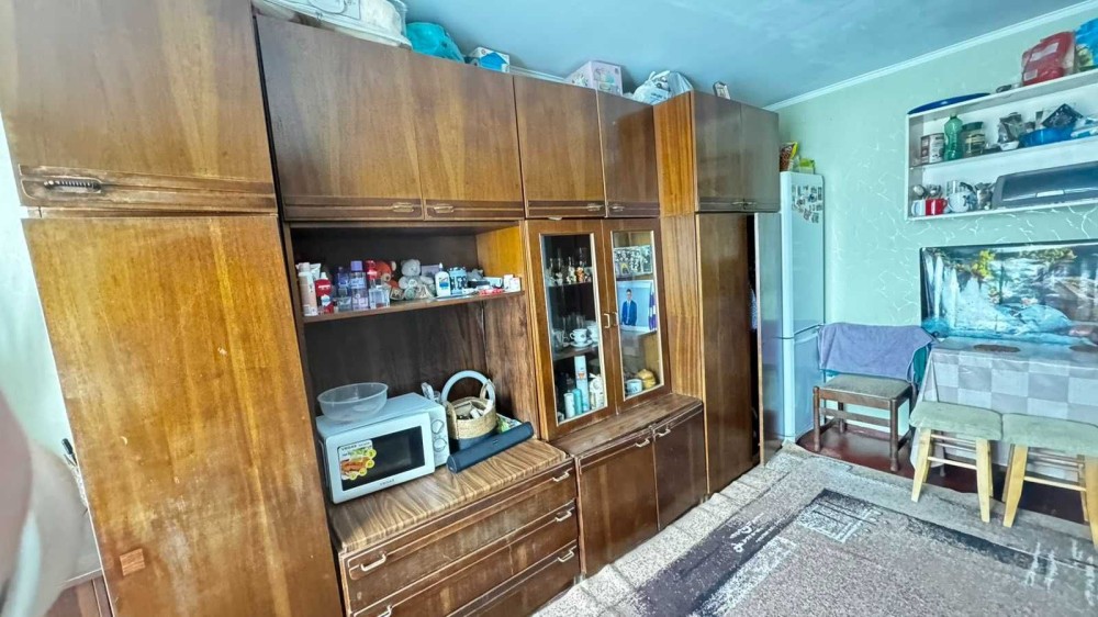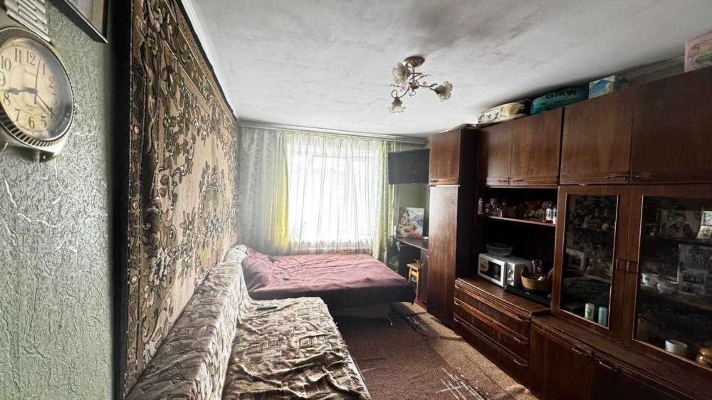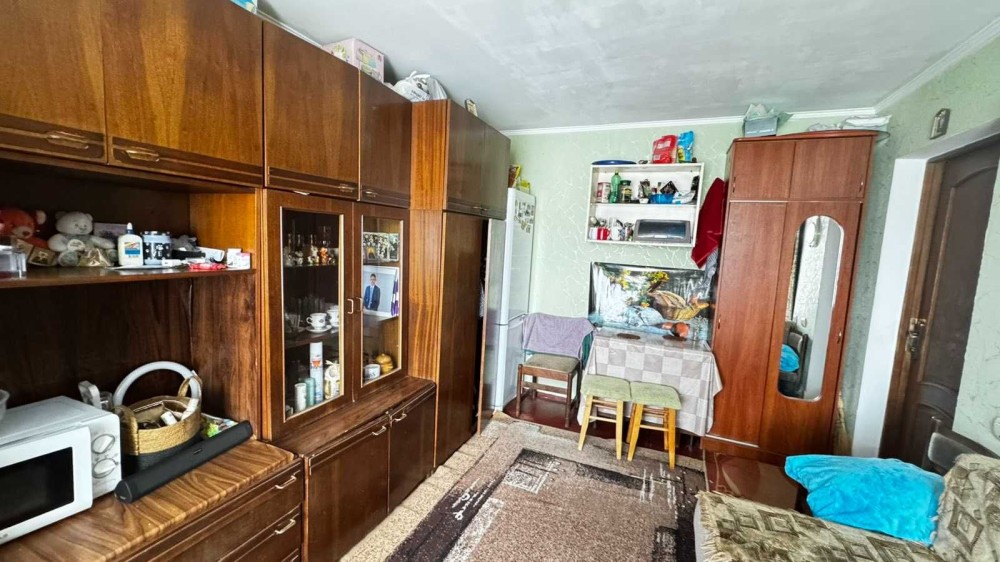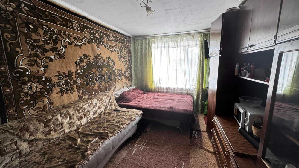 Кімната площею 17м, нормальний житловий стан, блочна система, зручності на 4 кімнати, кухня на 8 кімнат, є своя кладовка. Є всі необхідні меблі та техніка, холодильник та пральна машина.
