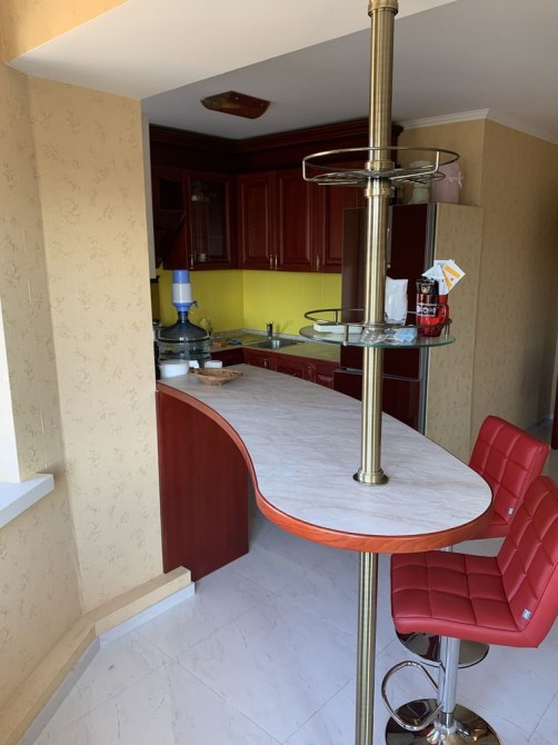 3кімнатна квартира, перебудована у 2кімнатну. Кухня-студія має телевізор, кондіціонер, диван, софу, посудомийну машину, пральну машину, витяжку, духову піч та вихід на балкон. Вікна кухні виходять у двір. Вікна спальні на проспект Миру. В спальні також є кондіціонер та телевізор. Ванна велика, має вуглову ванну та бойлер. Підійде для сімї з 3 людей. Поряд знаходиться бібліотека, магазин, море, кафе, банк та парк. Здається з проживанням і влітку також, без виселення. Деталі за телефоном.