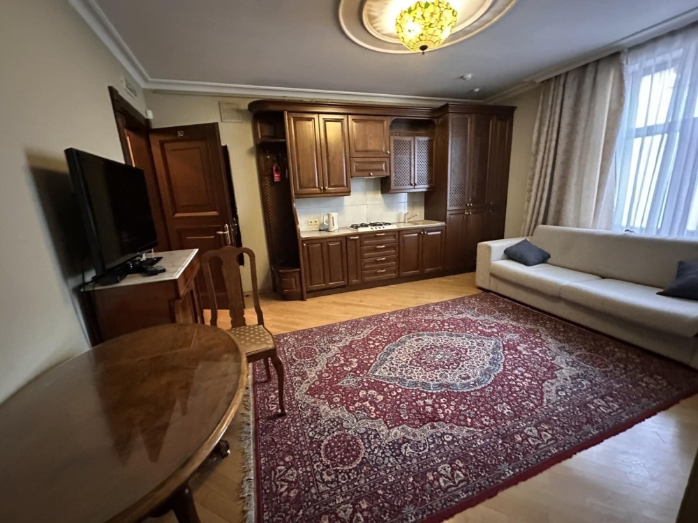 Будинок ВІП класу, коврові доріжки на сходовій, панорамні вікна, збоку парковка, опалення котел газ, інтернет, студія і окремо спальня, кондиціонер, телевізор.