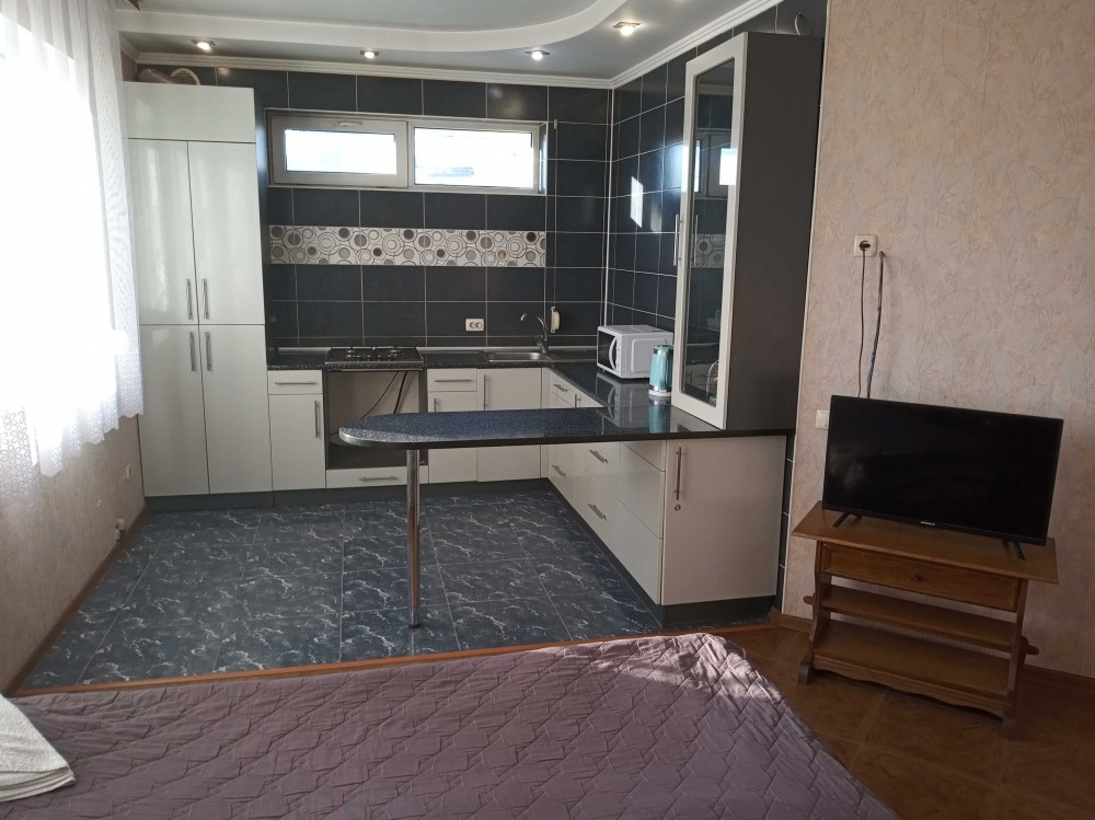 Безкоштовна стоянка, поряд продовольчий магазин, залізничний та автовокзал.