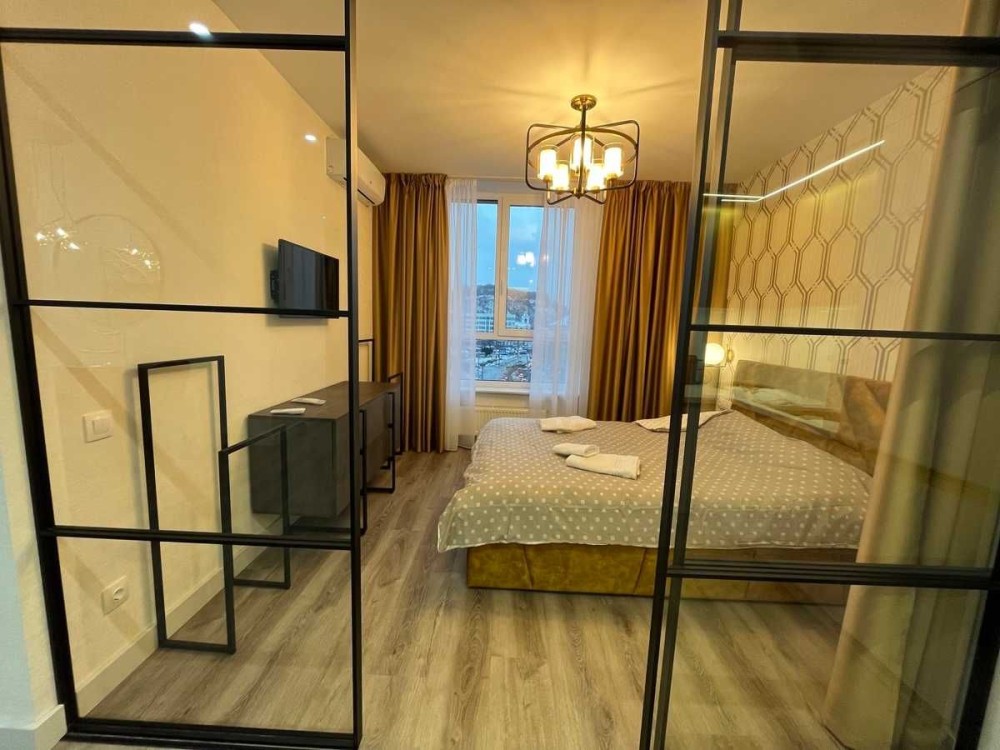 Здам 1-кімнатну Шевченковській р-н. Глибочицька 73. ЖК Поділ Плаза Резіденс. Найпрестижнійший комплес в Києві. 6/23эт, 4-я секція, 2 ліфти 60/12/35 Ремонт виконан у сучасному стилі, з дорогих матеріалів, Панорамні вікна, все продумано до дрібниць. Санвузол спільний, Всі необхідні меблі та техніка. Повністю обладнана для проживання (фен, кавоварка, посудомийна, пральна та сушильна машини, пилосос, кондиціонери, бойлер, Wi-Fi). .Окремо кімната спальні та кухня-студіо. Закритий дитячий майданчик та спортмайданчик. Завжди є світло, інтернет, опалення та вода До м.Контрактова площа 10 хвилин. Андріївської церкви, паркової алєї. Андріївського узвозу. Ціна на місяць 1000$