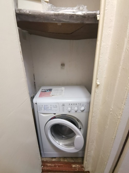 В кімнаті 2 дивани,шафа для речей,умивальник,туалет,холодильник,пральна машинка.