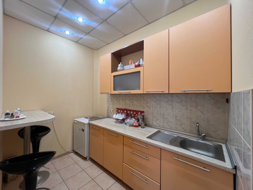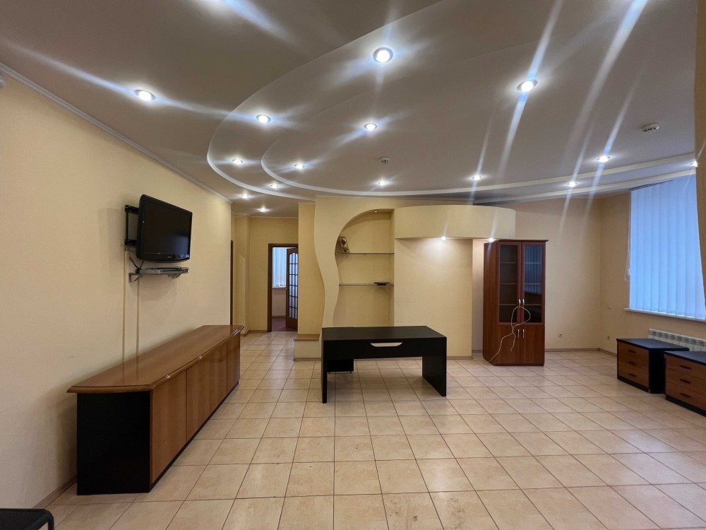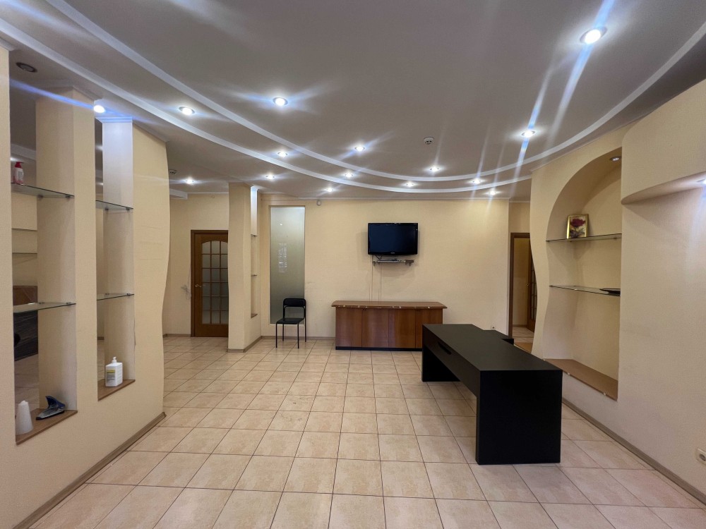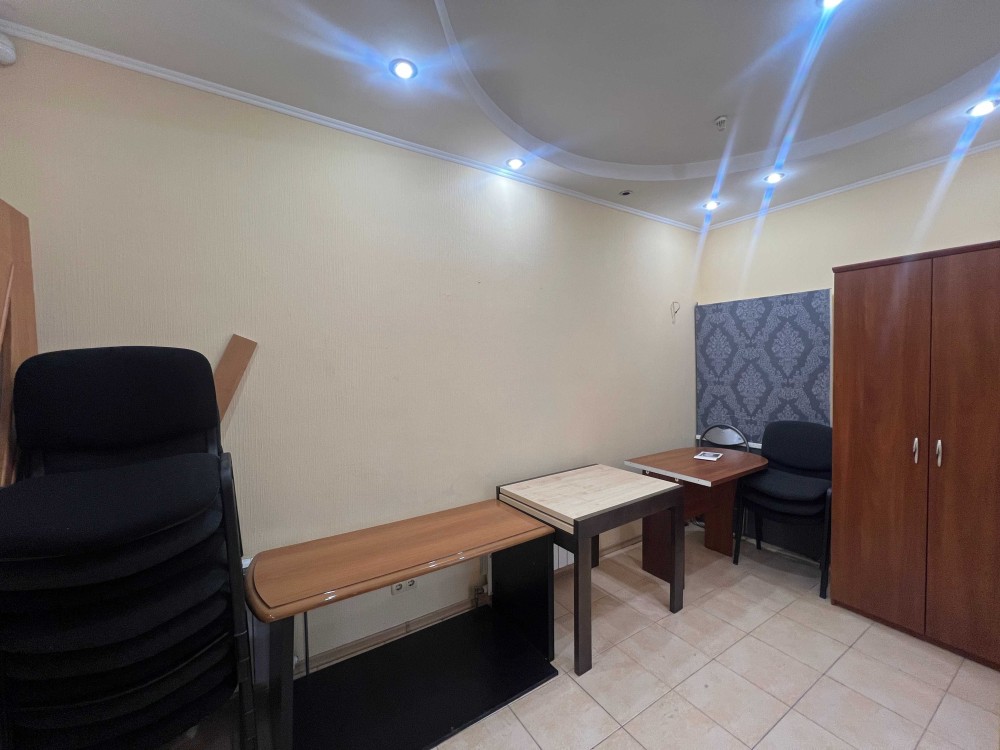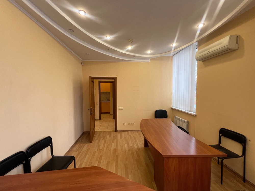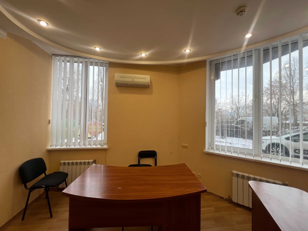 Нежитлове приміщення просторе, світле і затишне. укомплектоване меблями: офісними столами, стільцями, шафою та побутовою технікою: 2 кондиціонерами, холодильником. 3 фазний живлення, опалення електричне. Встановлена сигналізація, Підключен Інтернет. Є місця для паркування авто.