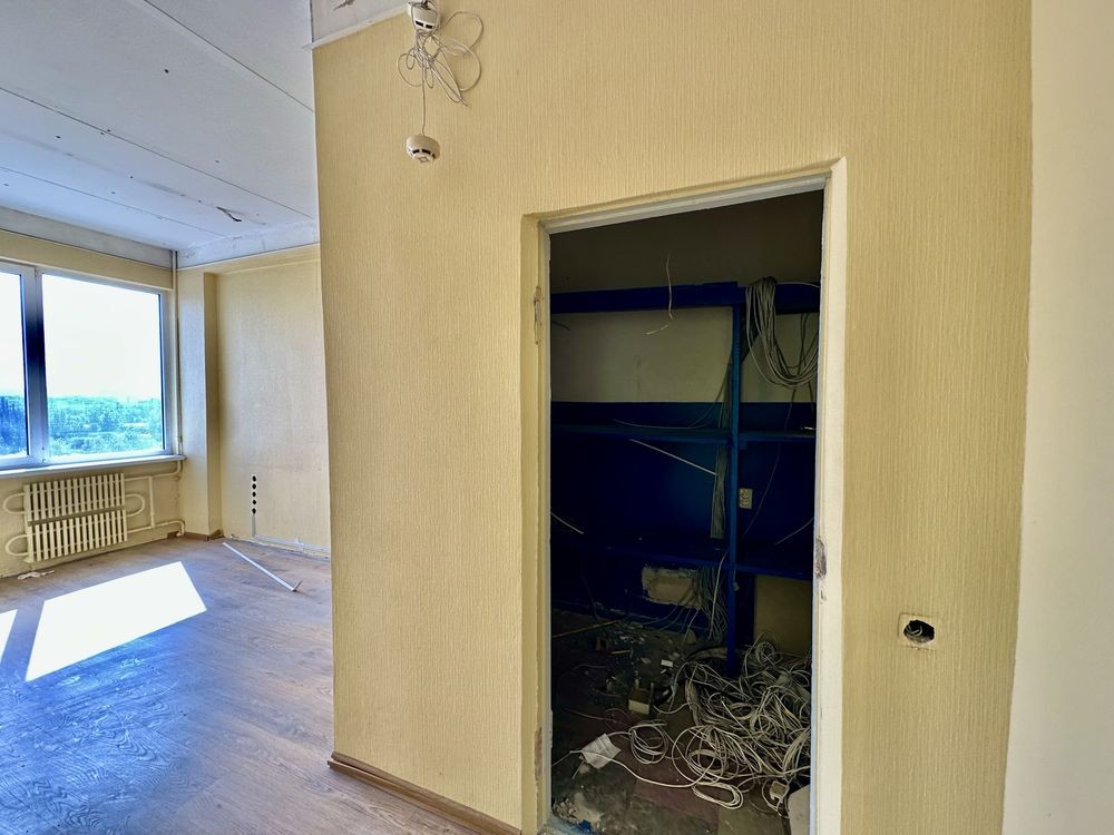 Площа: 69м, спланована в окремий кабінет, серверну/гардероб та велике приміщення поділене на дві робочі зони