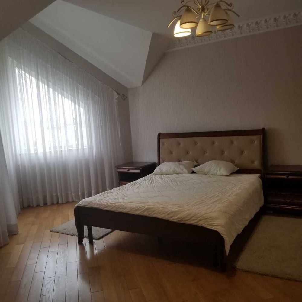є вся техніка ,три спальні з ліжками і гардеробними кімнатами, кабінет, три санвузли, дитяча з диваном і шафою, вітальня, посудомийка, паркінг,гараж,за деталями дзвоніть.