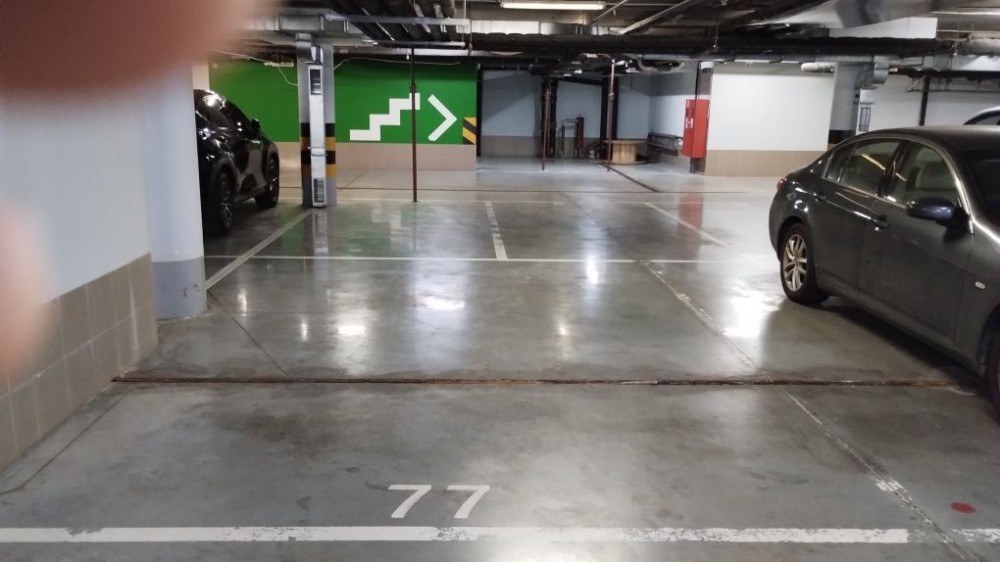 Паркомісце надзвичайно просторе. Відноситься до когорти найбільших в комплексі за розмірами паркомісць на одне авто. Паркуватись легко навіть початківцю. Виходи на вулицю та до ліфту поряд, див. фото паркомісця.