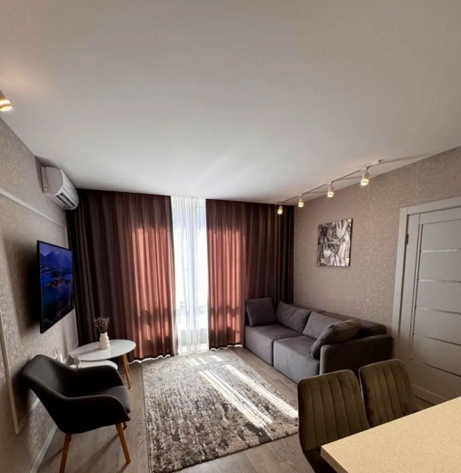 ​Вітальня/кухня: Об'єднаний простір, де ви знайдете все необхідне. Кухня оснащена сучасною технікою та барною стійкою з двома стільцями. Зону відпочинку обладнано зручним диваном та телевізором.