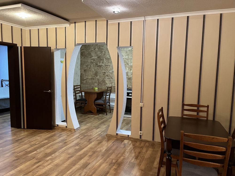 Удобная 2-комнатная квартира в самом центре города ул.Киевская 53 на 2-ом этаже. В гостинной большой мягкий угловой диван, в спальне хорошая двухспальная кровать, в квартире тепло и уютно. И в спальной и в гостиной телевизоры с кабельным телевидением. Кухня и ванная со всей бытовой техникой от микроволновки до стиральной машинки. Есть интернет wi-fi. Горячая вода круглосуточно. Всегда выглаженные чистейшие постели. Фотографии квартиры соответствуют действительности. Рядом много кафе, супермаркеты, центральный рынок, универмаг и две автостоянки. Цена для пары от 590 до 850 грн. за сутки в зависимости от числа дней проживания, спроса и дней недели, дополнительные спальные места плюс 50 гривен. Почасово от 150 грн. в час (но не менее чем на 450 грн. в дневное время). Командировочным выдаю документы. Не сдается для праздничных мероприятий с большим количеством человек, а также лицам не достигшим 22 лет.