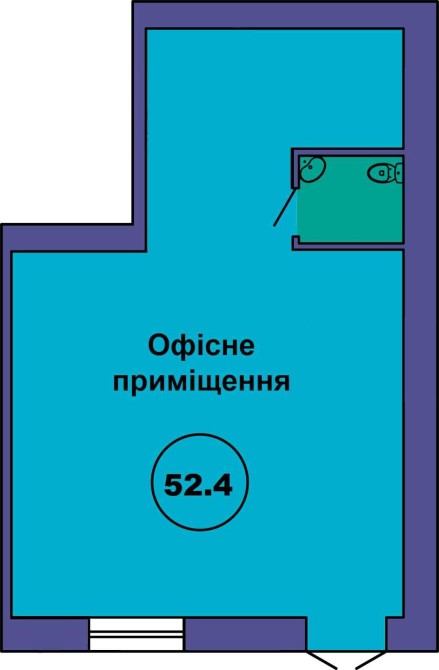 Загальна площа 52,4 кв.м.