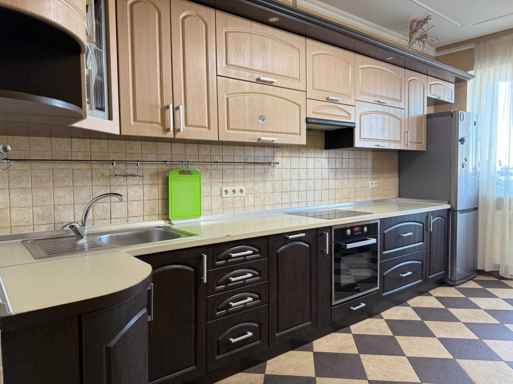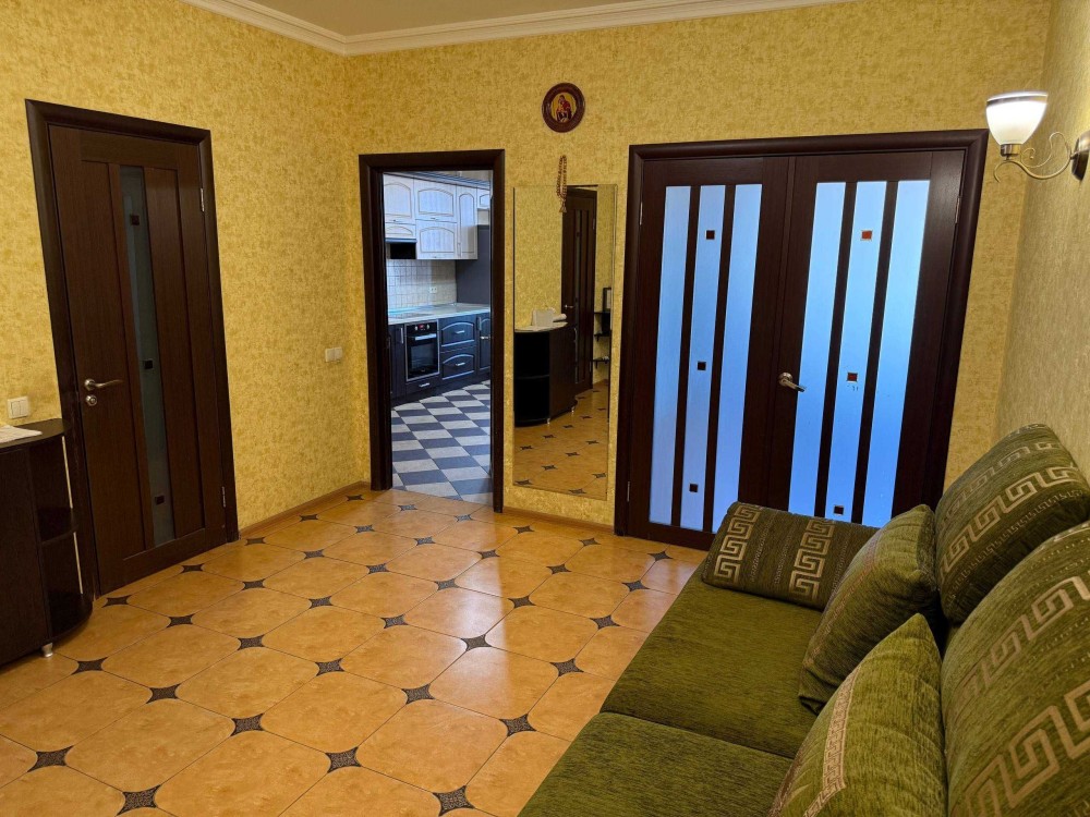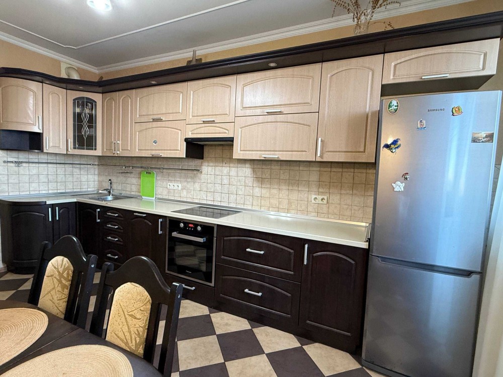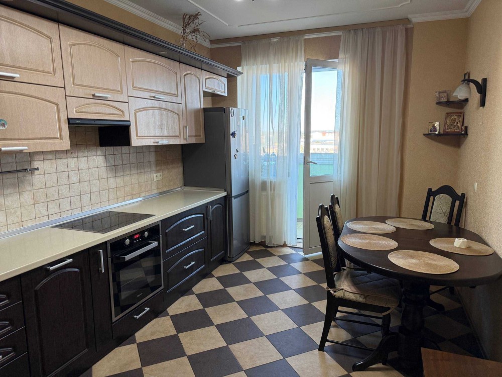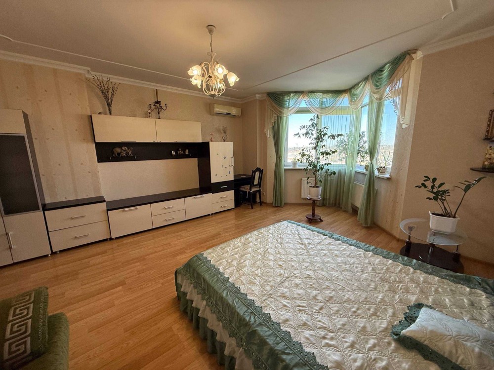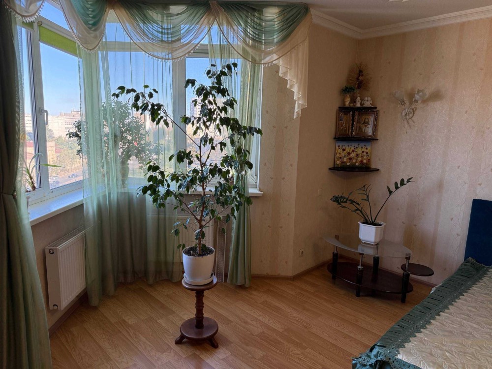 Сдам просторную уютную 1к квартиру 65кв.м. в Современном доме ул. Бориспольская 4, 8/25эт. монолитно-каркасного дома с подземным паркингом, Генератором, на случай блекаута, Общая площадь квартиры: 65кв.м., комната 25м., большой холл с двумя диванами 15м., кухня 15м, гардеробная, балкон застеклен, утеплен, Встроенная кухня, варочная поверхность, духовка, чайник, посуда, Холодильник no frost, большой обеденный стол, стулья, письменный стол, роутер, Кондиционер, Новая двуспальная кровать, на все счетчики: индивидуальный счетчик на отопление, на воду холодную/горячую, электрику, есть все для жизни и отдыха! 15000грн/мес.