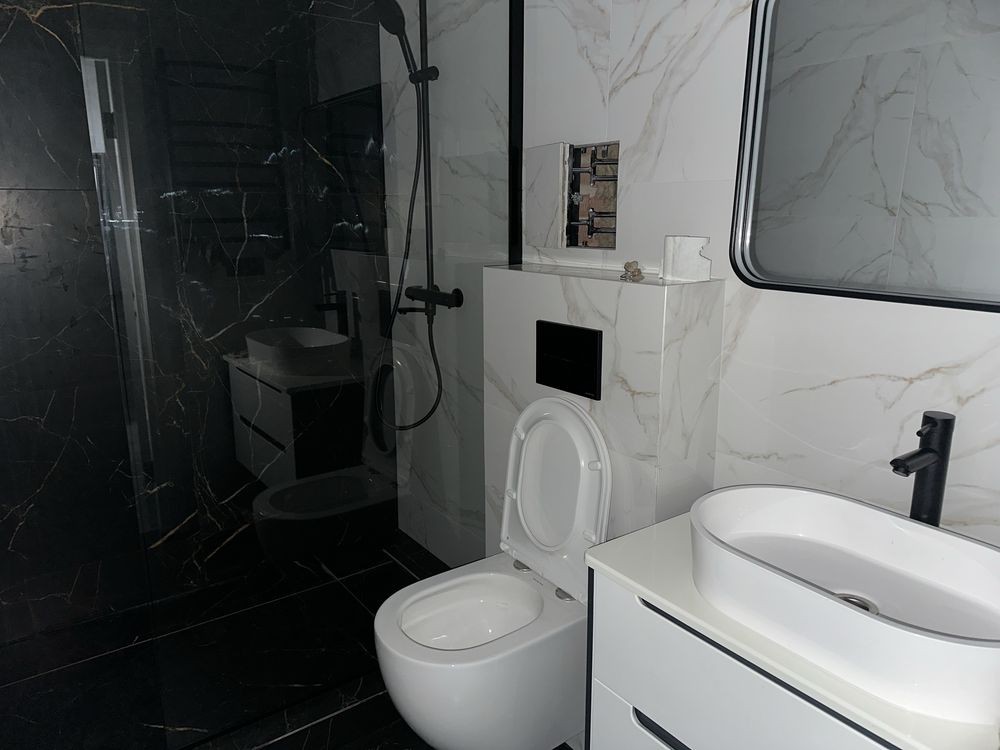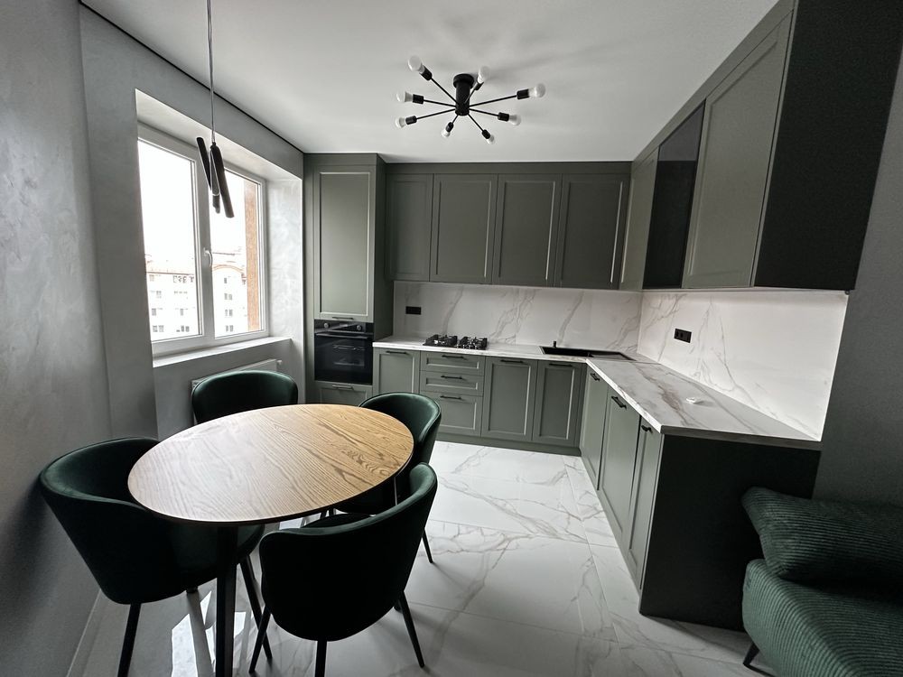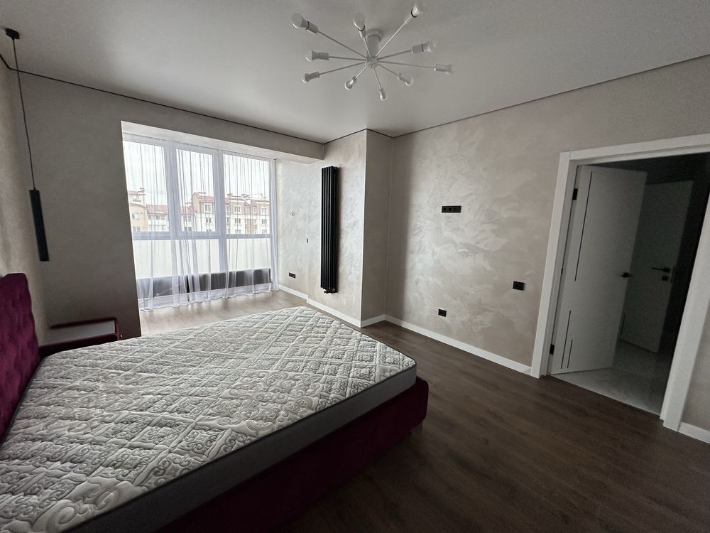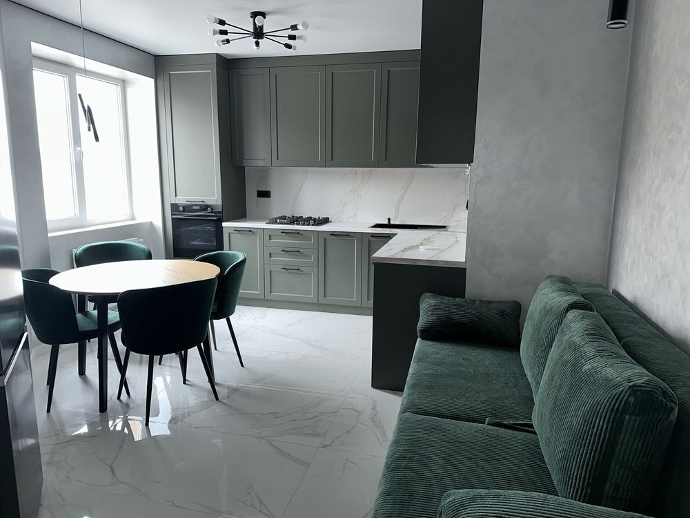 В квартирі виконаний сучасний ремонт та гарне планування - спальня з двоспальним ліжком та робочим місцем, кухня-вітальня, стильно облаштований санвузол та передпокій