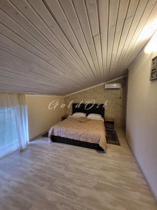 На першому поверсі гостьова-кухня та зручний санвузол, 2 спальні на другому поверсі. Всього до 6 спальних місць.