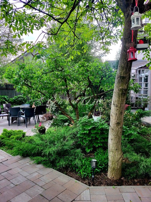 В саду мангал та садові меблі, гойдалки, кокон, шезлонги.
