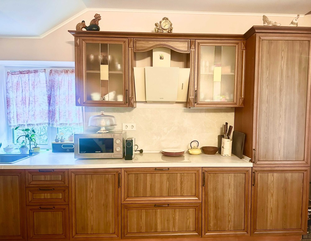 Здам в довгострокому оренду чудовий повністю оснащений будинок в оточенні вічнозелених сосен,поруч озера,ліс.Ідеальне місце для поціновувачів тиші,людей,які хотять взимку жити в "казці",а влітку в "раю" і насолоджуватись співом пташок,дихати свіжим повітрям і насолоджуватись тишею.Місце розташування будинку дуже вдале,знаходиться в закритому і охороняємому масиві Пуща Соснова,поруч Канадське містречко,в межах міста Києва, без заторів можна доїхати до Ашана і Lavina Mall за 5 хвилин. На першому поверсі розташована кухня-студія,столова,камінна зала,гардеробна,господарські приміщення,санвузол(душова кабіна),на другому поверсі три спальні,гардеробні,,санвузол(ванна). На територіі своя свердловина з джерельною водою,генератор (немає проблем зі світлом),зона барбекю,сауна на дровах,парковка на дві машини.Будинок максимально доглянутий і теплий,новий ремонт.Перша здача.