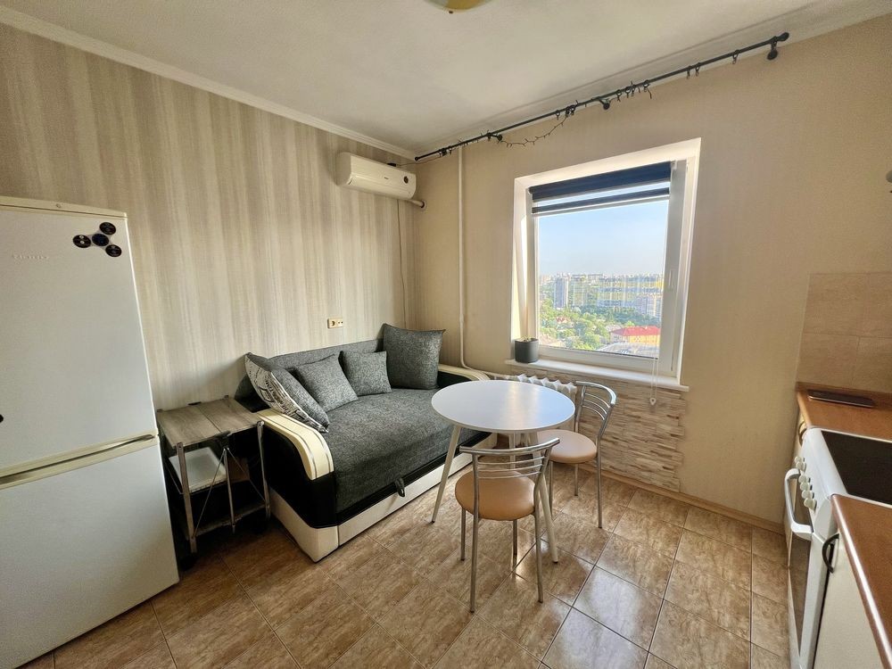 Здається довгостроково 1 кімнатна квартира в Соломʼянському районі , вул. Олександра Пироговського 19/1, 16 поверх 17 поверхового будинку . В квартирі є диван- ліжко у кімнаті, диван на кухні, велика засклена лоджія , гардеробна, кондиціонери в кімнаті та на кухні .
