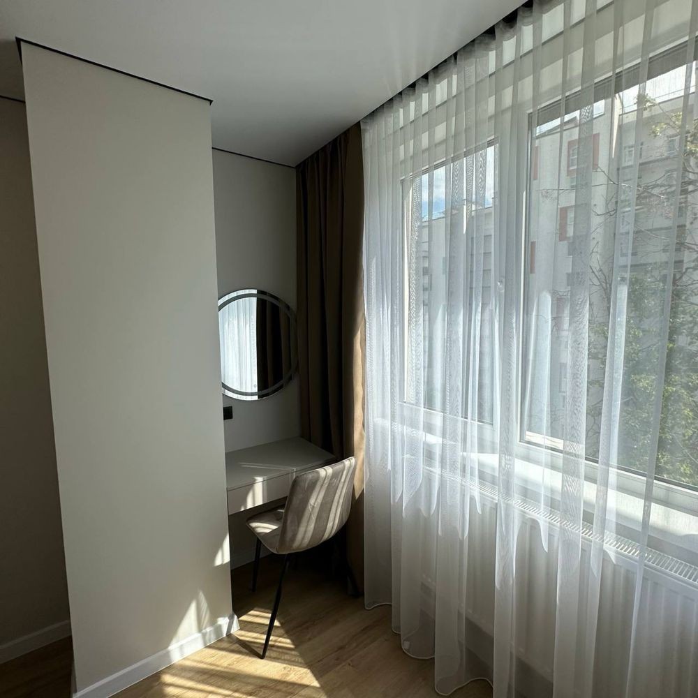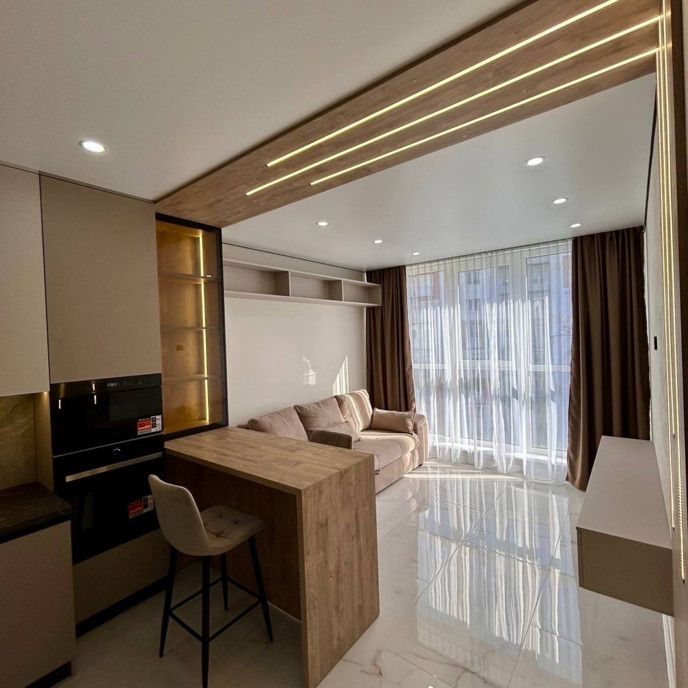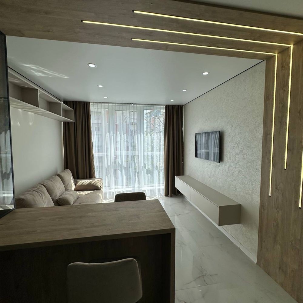 Оренда стильної 1 к кв з кухнею студією в новому будинку ЖК "Файна Таун" в Шевченківському районі, вул. Салютна, 2 Квартира 43 м2 , розташована на четвертому поверсі та складається з передпокою, спальні, великої кухні -студії та санвузла. Вікна квартири виходять в двір. Облаштована всіма необхідними меблями з екологічно чистої деревини та оснащена побутовою технікою: телевізор Samsung Smart 43, кондиціонери в кухні та кімнаті, плита індукційна, вбудований холодильник, духова шафа з функцією мікрохвильової печі, пральна машина з сушаркою. В кухні та ванній кімнаті тепла підлога, високошвидкісний інтернет. ЖК "Файна Таун" це: закрита територія з входом по картці, цілодобова охорона, відеоспостереження, паркінг, підземні контейнери для сміття, зарядні станції для електромобілів та лавки з інтегрованими батареями для підзарядки девайсів, розумне освітлення, яке підлаштовується під час доби та ще багато чого для того, щоб жити з комфортом й ні в чому себе не обмежувати) розповім при перегляді. Зручне транспортне сполучення та розвинута інфраструктура: магазини,спортивні та пішохідні зони ,зона барбекю, ресторани та кафе. Квартира, в якій поєднані комфорт та затишок, шукає своїх порядних орендарів молоду пару або одну людину без дітей та тварин. Перша оренда, квартира вільна.