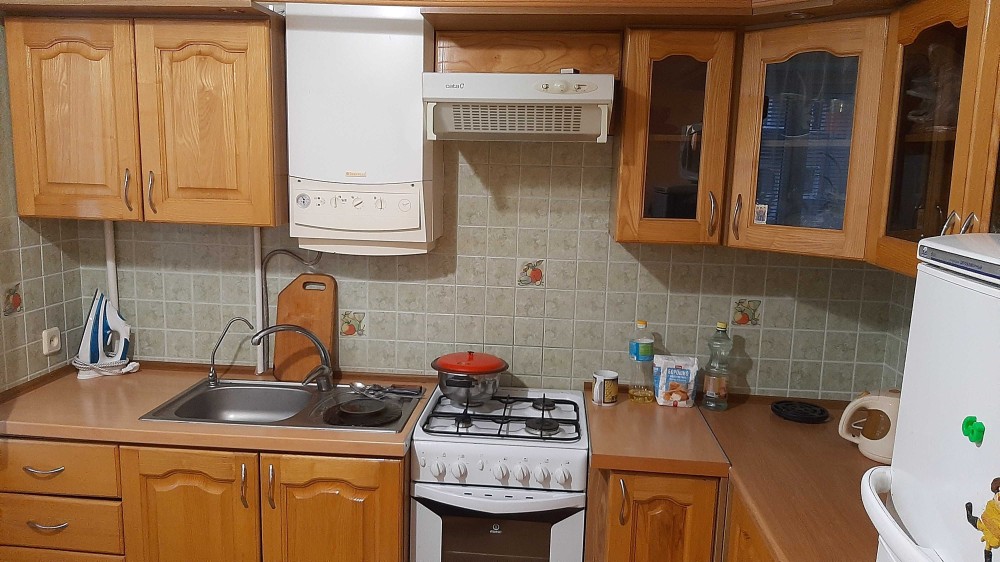 Квартира тепла, внутрішня, вікна на 2 сторони, перепланована на 3-кімнатну, буде вільна з лютого. Опалення - 2-контурний газовий котел.