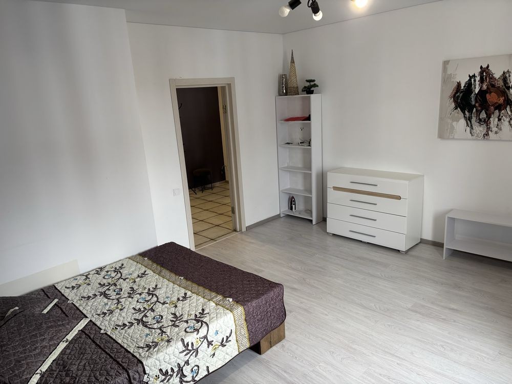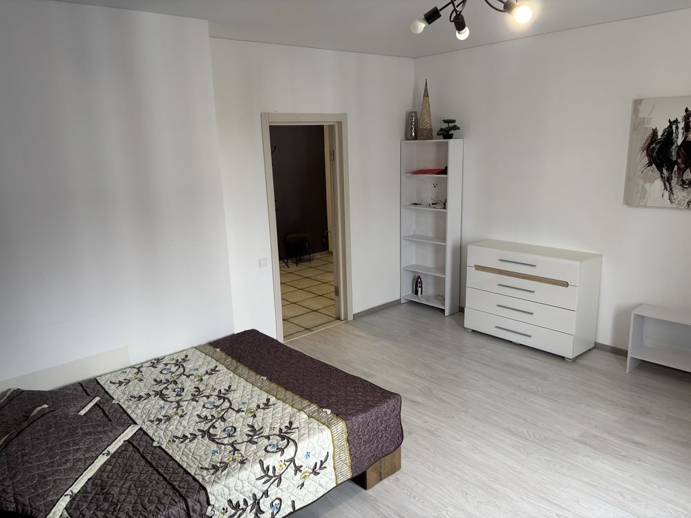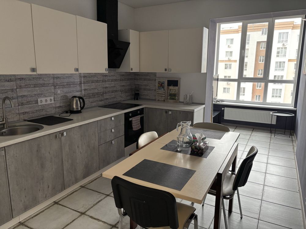 Оренда стильної 1 к кв з кухнею студією в новому будинку ЖК "Файна Таун" в Шевченківському районі, вул. Салютна, 2 Квартира 43 м2 , розташована на четвертому поверсі та складається з передпокою, спальні, великої кухні -студії та санвузла. Вікна квартири виходять в двір. Облаштована всіма необхідними меблями з екологічно чистої деревини та оснащена побутовою технікою: телевізор Samsung Smart 43, кондиціонери в кухні та кімнаті, плита індукційна, вбудований холодильник, духова шафа з функцією мікрохвильової печі, пральна машина з сушаркою. В кухні та ванній кімнаті тепла підлога, високошвидкісний інтернет. ЖК "Файна Таун" це: закрита територія з входом по картці, цілодобова охорона, відеоспостереження, паркінг, підземні контейнери для сміття, зарядні станції для електромобілів та лавки з інтегрованими батареями для підзарядки девайсів, розумне освітлення, яке підлаштовується під час доби та ще багато чого для того, щоб жити з комфортом й ні в чому себе не обмежувати) розповім при перегляді. Зручне транспортне сполучення та розвинута інфраструктура: магазини,спортивні та пішохідні зони ,зона барбекю, ресторани та кафе. Квартира, в якій поєднані комфорт та затишок, шукає своїх порядних орендарів молоду пару або одну людину без дітей та тварин. Перша оренда, квартира вільна.